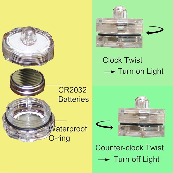 - Easy twist on/off + simple battery change. Battery last 30-70hours