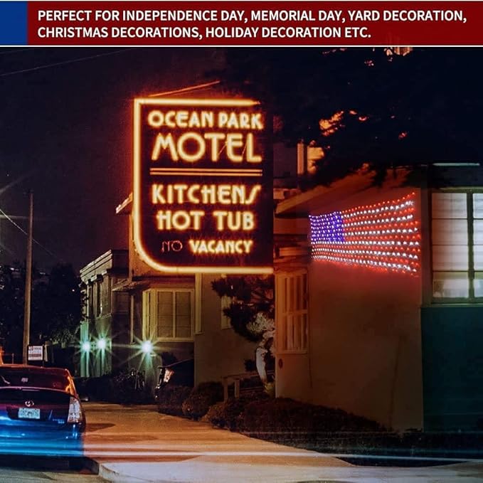 - 【Large Size】: the size of our flag light is 6.54 FT x 3.28 FT, this LED US Flag Net Light Is So Brilliant And Beautiful, Hanging It At Your Home Or Yard, Which Is A Perfect Way To Show Your Patriotism In Memorial Day, Independence Day, Labor Day, Christmas Day, Festival , Holiday , Party, Ceremony.