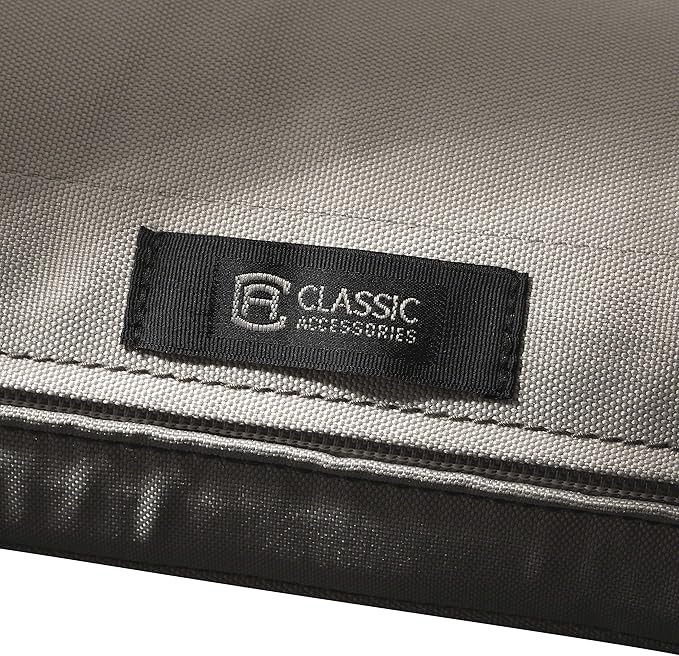 Classic Accessories Ravenna Water-Resistant 23 x 23 x 5 Inch Square Patio Seat Cushion Slip Cover & Foam, Mushroom, Lounge Chair Cushion