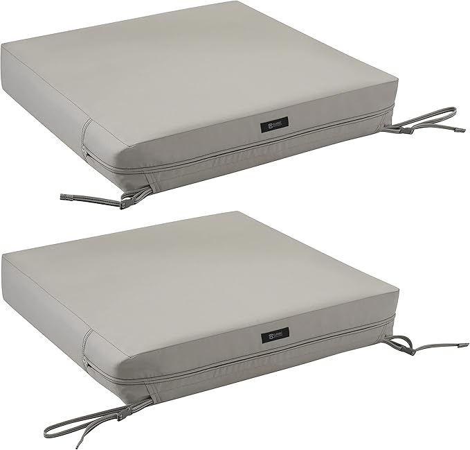 Classic Accessories Ravenna Water-Resistant 25 x 25 x 5 Inch Square Patio Seat Cushion Slip Cover & Foam, Mushroom, Lounge Chair Cushion