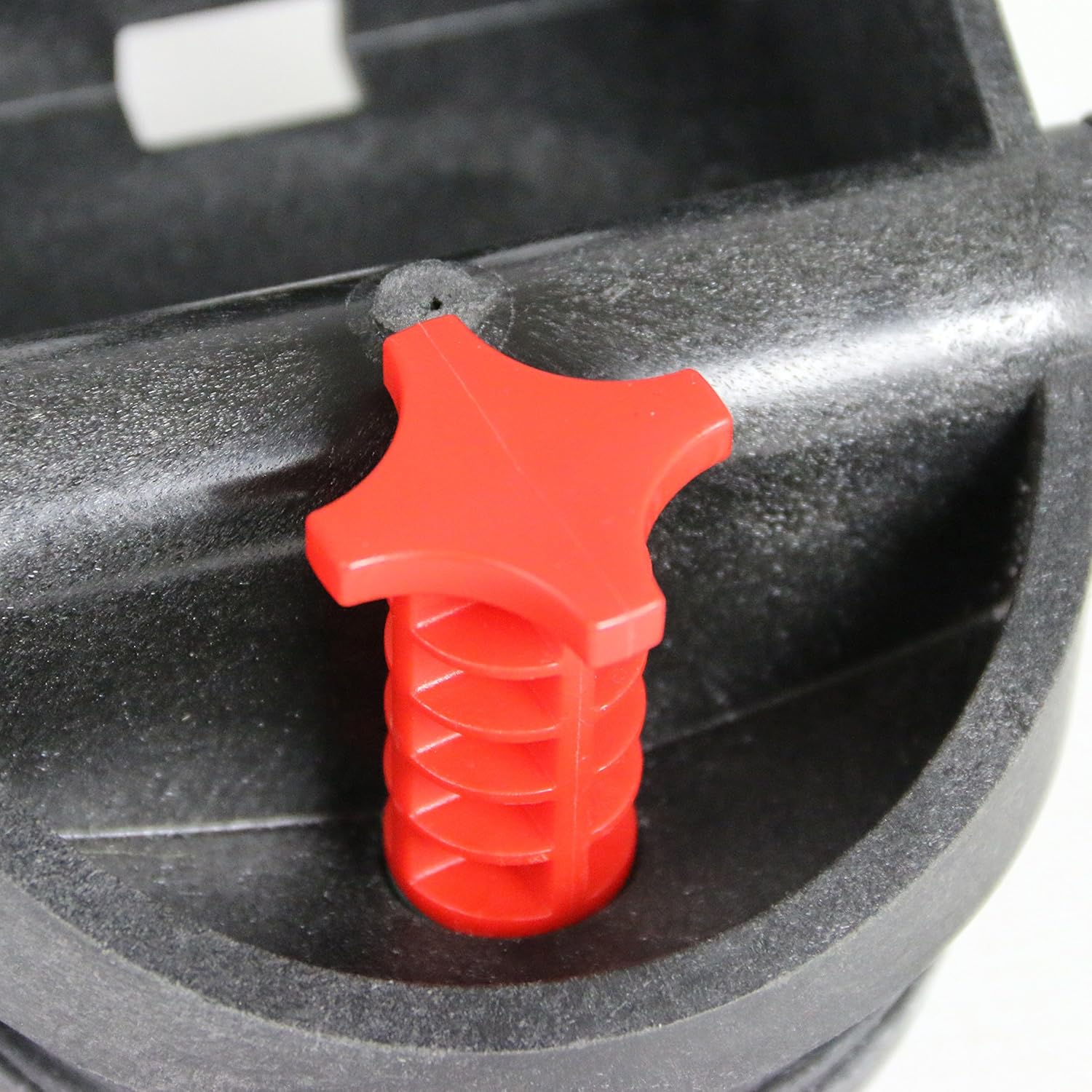 - Rigid inlet tube with filter for debris-free mixing, drain plug with valve to quickly empty the tank after each use