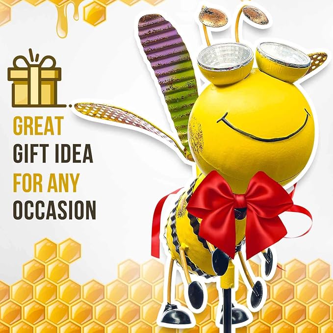 - Crafted from durable metal and painted with UV-resistant paint, this led solar bumble bee will withstand the elements, ensuring long-lasting beauty for your garden, making a great garden bee.