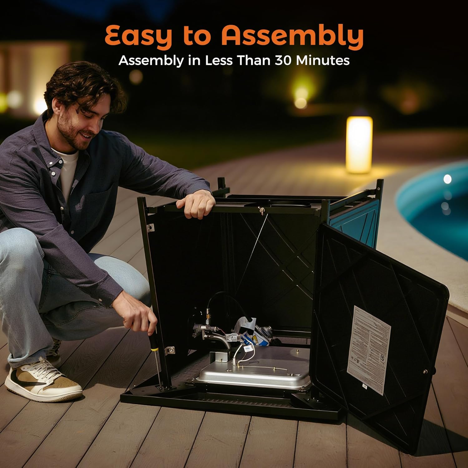 - SAFTY AND GREAT HEAT OUTPUT: Our gas fire pit table is 50,000 BTU heat output gives you enough heat to warm you up on cool morning and nights