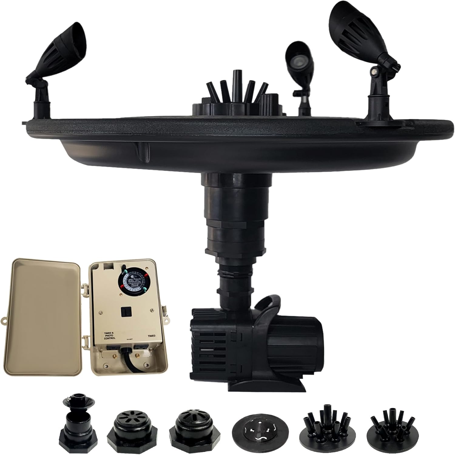 - Customizable Spray Patterns – Includes a quick-release nozzle flange and 9 interchangeable fountain spray patterns to enhance your landscape and match your pond’s style.