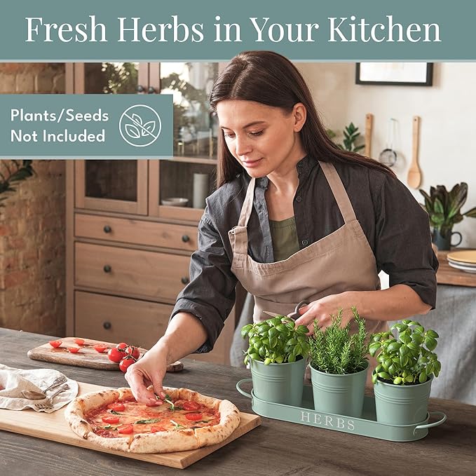 - Indoor herb garden planter with tray - Add greenery to your space with this vintage metal windowsill planter. Herb planters for indoor plants with a farmhouse touch. Place the indoor herb planter on your kitchen counter or display the small herb planter as an apartment window planter.