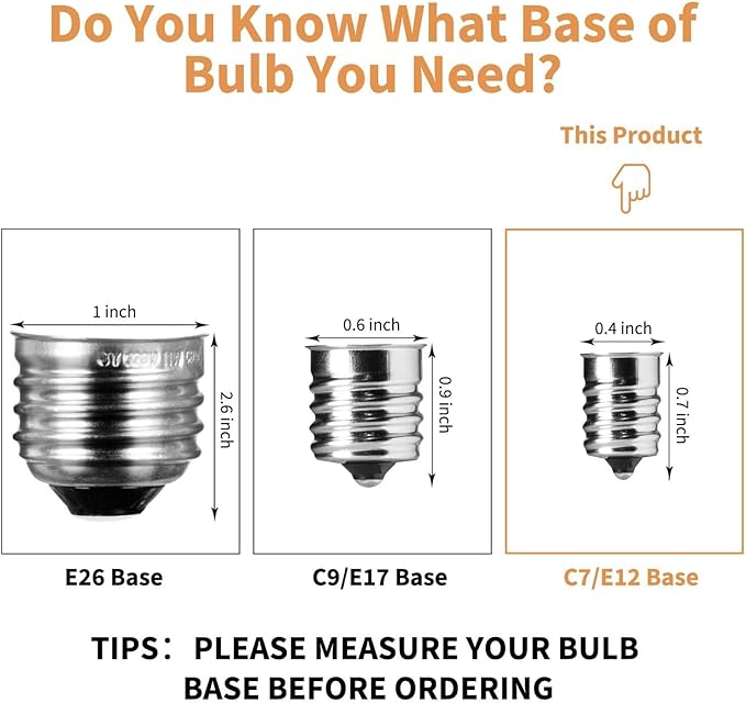 - Vintage edison bulbs: G40 string light bulbs have a candelabra screw base that fits c7 and e12 sockets. Each piece 120v 5w. Outside waterproof bulbs for indoor and outdoor use
