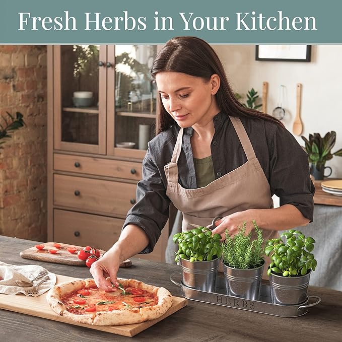 - Indoor Herb Garden Planter with Tray - Add greenery to your space with this vintage metal windowsill planter. Herb planters for indoor plants with a farmhouse touch. Place the indoor herb planter on your kitchen counter or display the small herb planter as an apartment window planter.