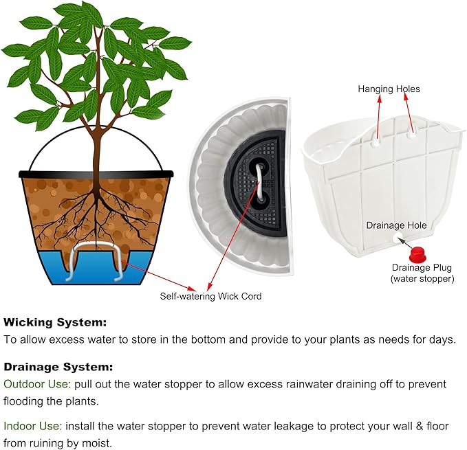 - PLANTER WITH DRAINAGE MESH & WATER RESERVIOR: hanging planter pots with drainage mesh to allow excess water to store in the bottom of this lazy flower pot and provide to your plants as needed to ensure plants take enough water they need for days, and you don't have to water them frequently. This clever hanging flower pots may help you care your plants when you go outside a couple days or on business.