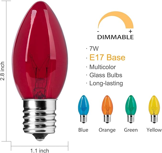 - 50 lights included: C9 E17 base light sockets
