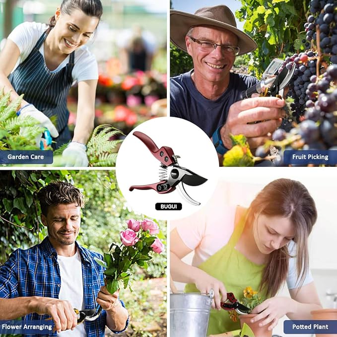 - π πππ π¦π π’π’π§π & πππππ‘ ππ¨π§ - Premium bypass alloy steel blade ensure that each cut is smooth and clean without hurting the stems and branches of your plants.