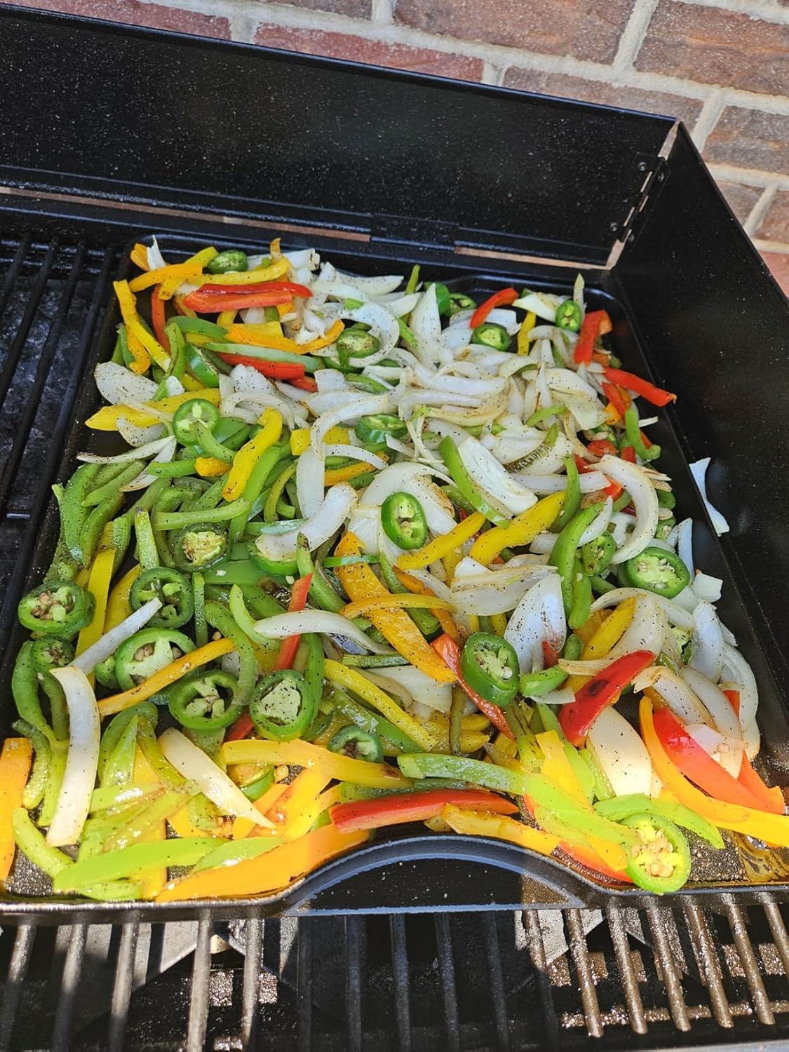 - 【Cast Iron Material - Provides Even Heating】Cast iron material enables the griddle to heat up quickly and efficiently, holds heat longer than stainless steel. Also adds a unique depth of flavor to your dishes, locking in flavor and texture, the pre-seasoned vegetable oil is ready to use, the Uniflasy's griddle for gas grill gives you excellent grilling results, which makes it the perfect kitchen tool for grilling vegetables and meats.