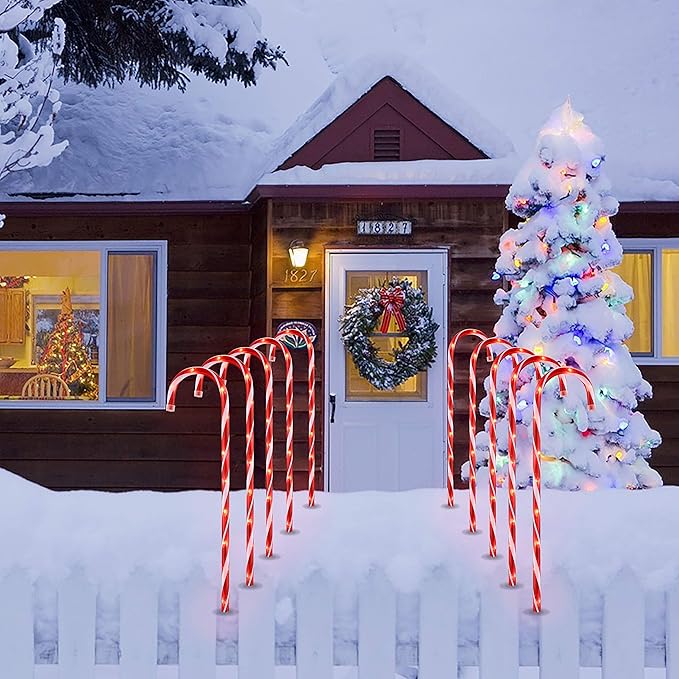 - 【What You Get】You will get a package of 10 pack 26'' candy cane lights, 10 stakes , 4 spare bulbs and 4 fuses. An detailed installation instruction ,finish the DIY installation only takes you a few minutes.