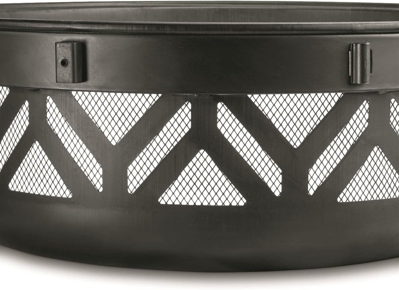 Castlecreek 47" Fire Pit BBQ Grill Outdoor Wood Burning Steel Log Firepit for Camping, Grilling, Smores, Yard, Cooking Outside, Barbecue, Bonfire Geometric