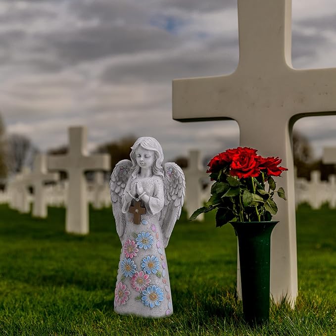 - 【Weather-proof and Durable Material】Made of resin, hand-painted and finished with a UV resistant coating, the outdoor angel figurine is solid and long-lasting, can withstand rain, snow or scorching sun without cracking, fading or rusting. Therefore, it maintains a beautiful look for years to come.