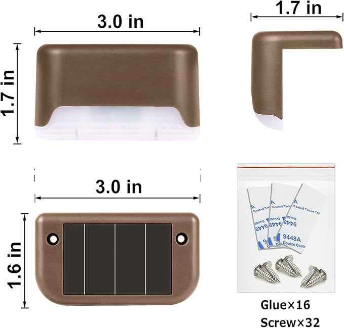 - 【Widely Use & Multipurpose】Comes with the screws and glues, the lights can be placed almost anywhere outdoors. They can be used for lighting and decoration. You can put it on stairs, steps, decks to light up the front door, patio, yard, driveway, outdoor wall.