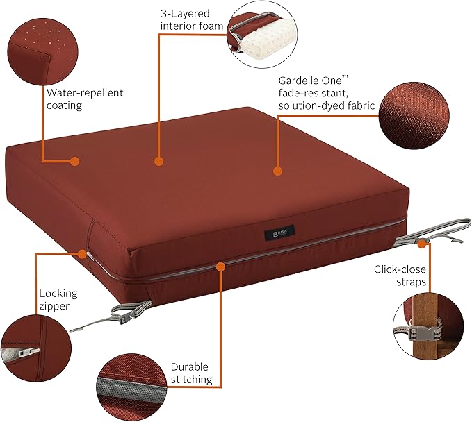 Classic Accessories Ravenna Water-Resistant Patio Lounge Chair/Loveseat Cushion, 25 x 27 x 5 Inch, Spice, rectangle Outdoor Seat Cushion