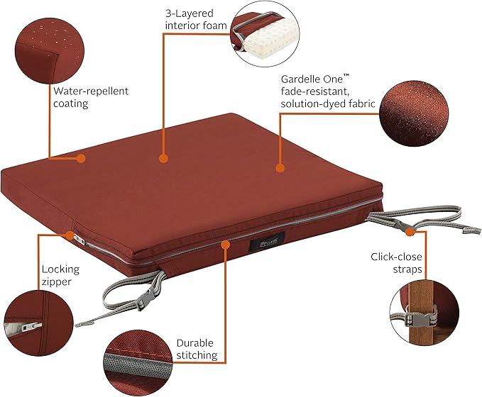 Classic Accessories Ravenna Water-Resistant Patio Chair Seat Cushion, 18 x 18 x 2 Inch, Spice, Patio Furniture Cushions
