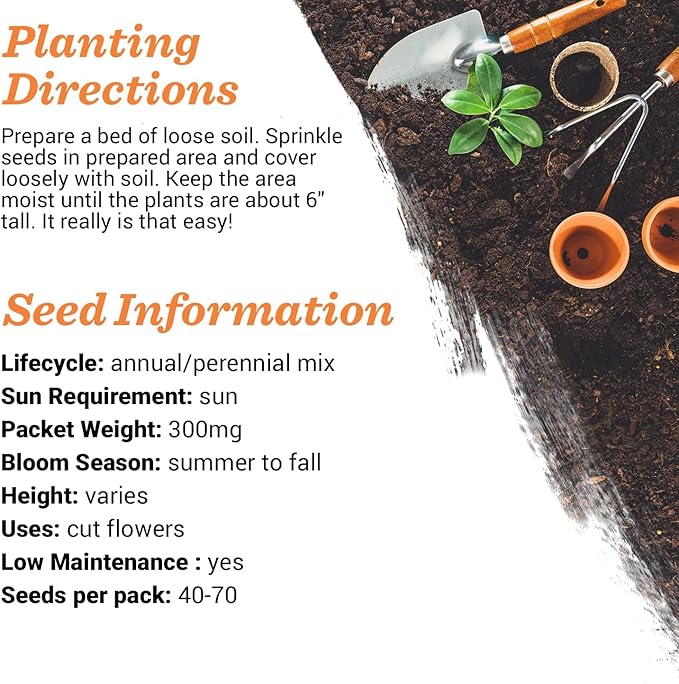 - EASY TO GROW SEEDS: Wildflowers are very resilient plants that grows quickly and easily. Plant these seeds when frost season is over. Give them full sun, soil, and enough room to grow in a warm environment, and they should thrive for you. Water during dry periods. Instructions for care included on packaging.