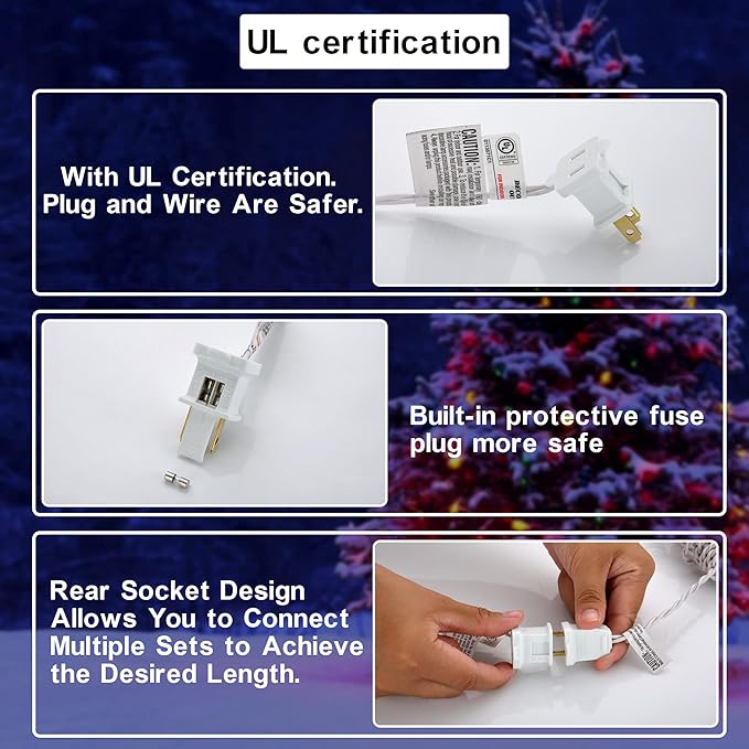 - đ€¶ăSafe & DurableăPassed UL certification test. IP 44 waterproof feature ensures the Christmas pathway lights can illuminate under a rainy, snowy day. Provide 4 spare fuses and bulbs for replacement in case.