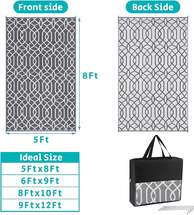 - Versatile Outdoor Carpet: The indoor outdoor plastic rugs have multiple choice in different colors(4'x6',5'x8',6'x9',8'x10',9'x12',9'x18',8'round), is ideal for a variety of indoor outdoor activities,like patio mat, deck rug, garden rug, beach mat, picnic mat, BBQ party mat, rv camping rug,pool rug,outdoor doormat,garage rug,front door mat,allowing you to have plenty of imaginable space for more fun.