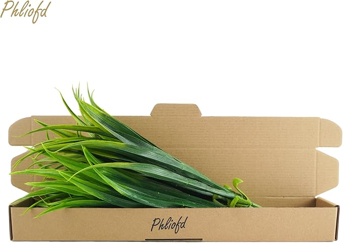 6Pcs Artificial Grass Fake Plants 17.3in 16 Leaves Outdoor Fake Grass UV Resistant Greenery Plastic Plants for Home Window Garden Office Patio Hanging Planter Pathway Front Porch Décor