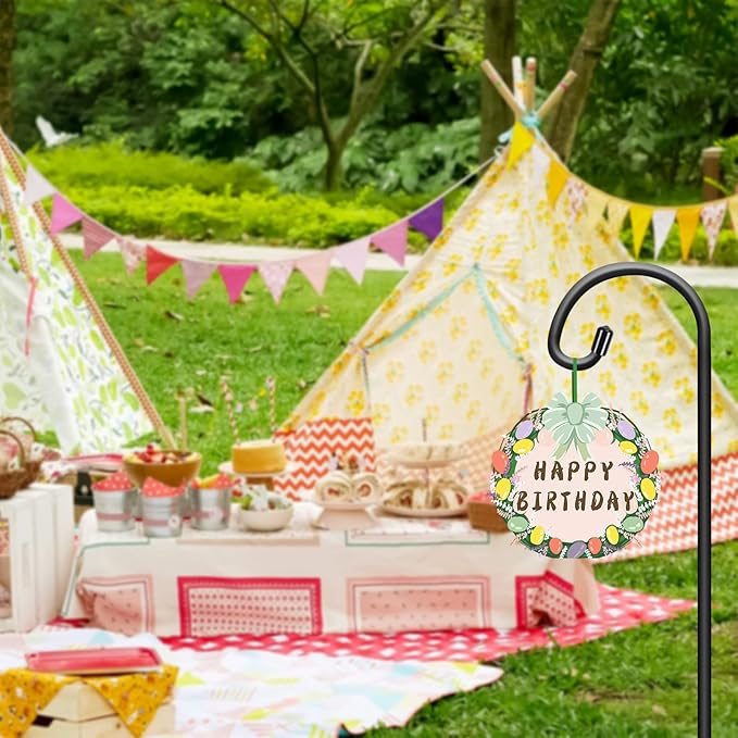 - 【WIDE APPLICATION】 Gtongoko shepherds hook for outside will add a sense of charm to any occasion, whether it is in your garden, lawn, or vibrant bushes around pathways. You can hang Halloween decorations, bird feeders, solar lights, lanterns on it to add the desirable beauty. These heavy duty hangers are also very suitable for hanging flower balls on both sides of the wedding aisle, which will make your wedding more elegant and grand.