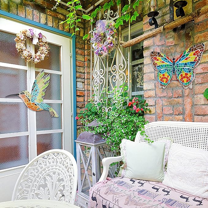 - 🦋 Widely Use: Mosaic butterfly and hummingbird wall art is suitable for both indoor and outdoor, perfect for garden, fence, yard, window, backyard, front door, porch, living room, bedroom, home, kitchen, etc.