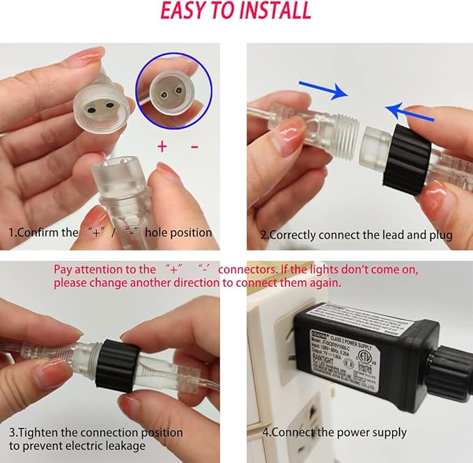 - [High Quality LED Christmas Lights]Our Christmas string lights are made of high quality transparent PC material with good light transmission performance. It is dust-proof, corrosion-resistant and aging-resistant, so you can use it with confidence. These icicle lights are IP65 waterproof and the plug is a UL plug. The lighting uses a safe voltage of 7V, which is very safe and is the best choice for festive decoration.