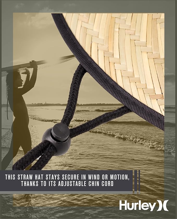 • DURABLE WEAVE PATTERN DESIGN: This Hurley Men's Straw Hat features a classic wide-brimmed design that's crafted from premium woven straw, offering both style and lasting durability. Whether you're relaxing on the beach or standing watch as a lifeguard, this sun hat not only looks great but stands up to the elements, keeping you shaded and cool.