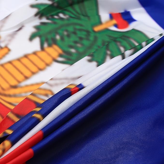 - 【DURABLE MATERIAL】The fan Haiti flag is made of durable polyester fiber, which can withstand rain, strong wind or hot sunlight. The edge of the flag uses double stitching, 3 brass buttonholes make it tear-resistant to improve its durability.
