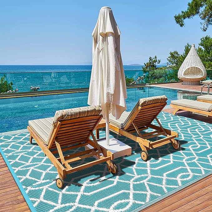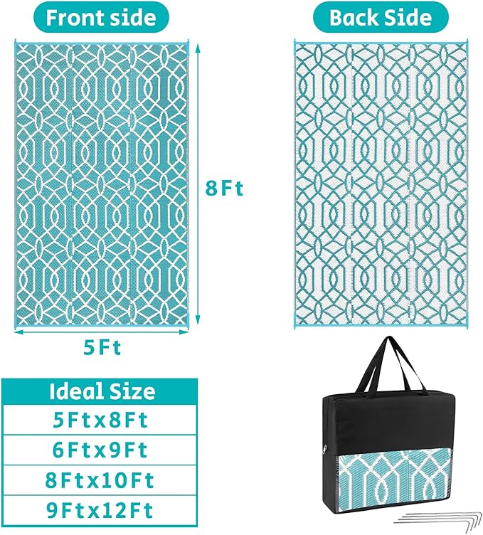 - Versatile Outdoor Carpet: The indoor outdoor plastic rugs have multiple choice in different colors(4'x6',5'x8',6'x9',8'x10',9'x12',9'x18',8'round), is ideal for a variety of indoor outdoor activities,like patio mat, deck rug, garden rug, beach mat, picnic mat, BBQ party mat, rv camping rug,pool rug,outdoor doormat,garage rug,front door mat,allowing you to have plenty of imaginable space for more fun.