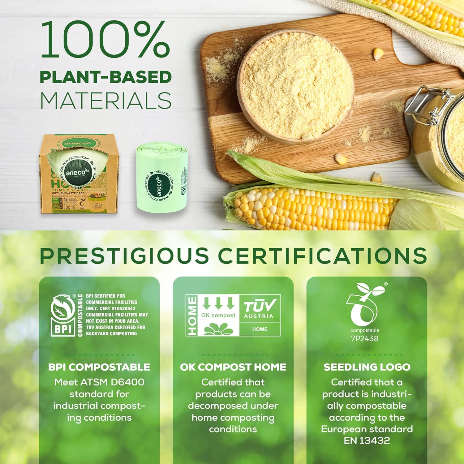 - π Proud to be one of few HOME compostable trash bags in the market, ANECO Compostable bag can break down completely not only in industrial facilities but also in home system. Use these bags to collect kitchen scraps and put them straight into the compost dumpster, or bury and turn them into valuable compost for your garden