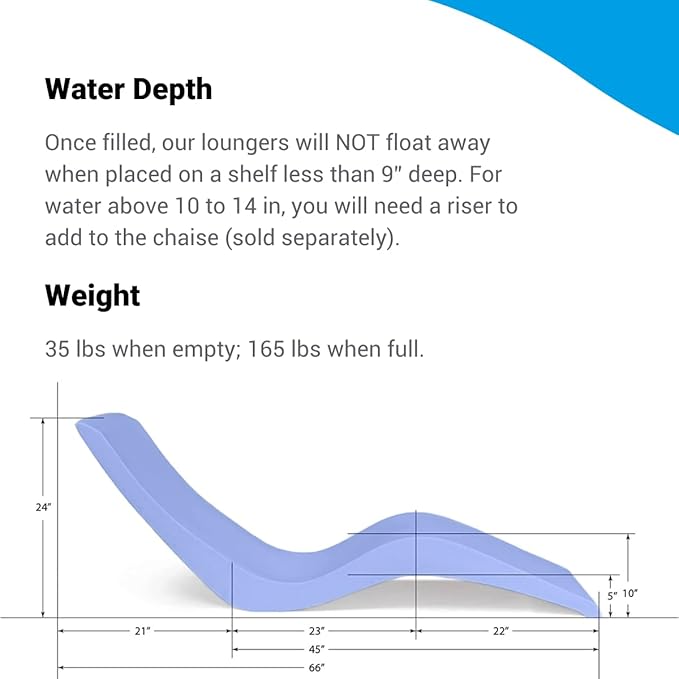 - SAFE FOR ALL POOLS - Whether your pool is saltwater or chlorine, vinyl or fiberglass, commercial or residential, this in-pool lounger works in depths up to 9” of water; for deeper ledges, please see our Aqua Outdoors Risers (sold separately).