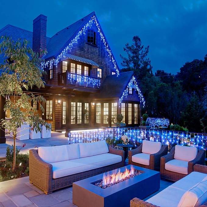 - βIdeal Outdoor Decorations - The led icicle lights are IP44 Waterproof, which can withstand all kinds of weather, ideal for indoor and outdoor decorations. LED Christmas lights are perfect for Christmas, Halloween, Thanksgiving, wedding, party, Valentine's Day and any celebrating time. However, please keep the plug away from water.