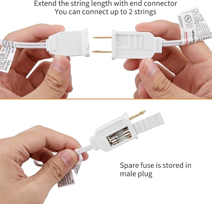 - 100 feet long string with 100+4 spare clear C9 Bulbs. Not Connectable