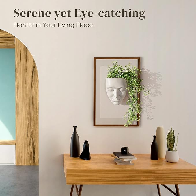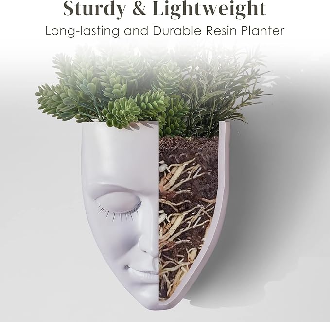 - Elegant Face Design: This wall-mounted resin face planter has an elegant and gorgeous face design that adds a sense of peace and serenity to modern interior design.