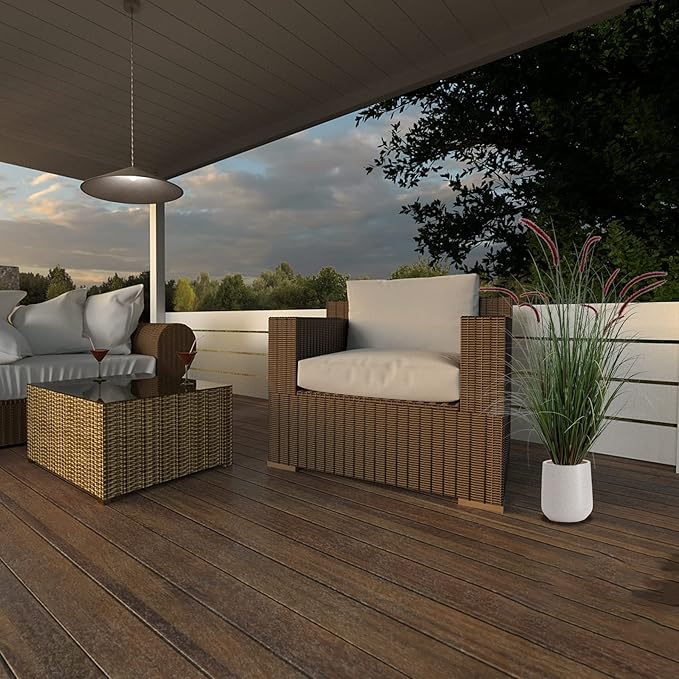 - 1.This faux plant features close to natural green grass with 10 Purple silk flowers, all inside a durable and solid flowerpot. Artificial Setaria grass is 47 inches high.base with a black plastic pot in 5'' dia ,5.9''high.it’s easy to put it in a nice bigger planter as desired.