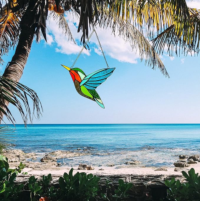 Hummingbird Stained Glass Window Hangings, Birds Stained Glass Decorations,Bird Suncatcher for Window Decor Hummingbird Gifts for Mom,Bird Lovers