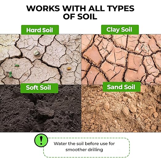 - Cut Your Work Time in Half: Experience gardening like never before—no more blisters or sore hands! Our augers drastically reduce the time it takes to plant flowerbeds or install fences. Enjoy the freedom of digging as many holes as you need, all in a fraction of the time it would take by hand!