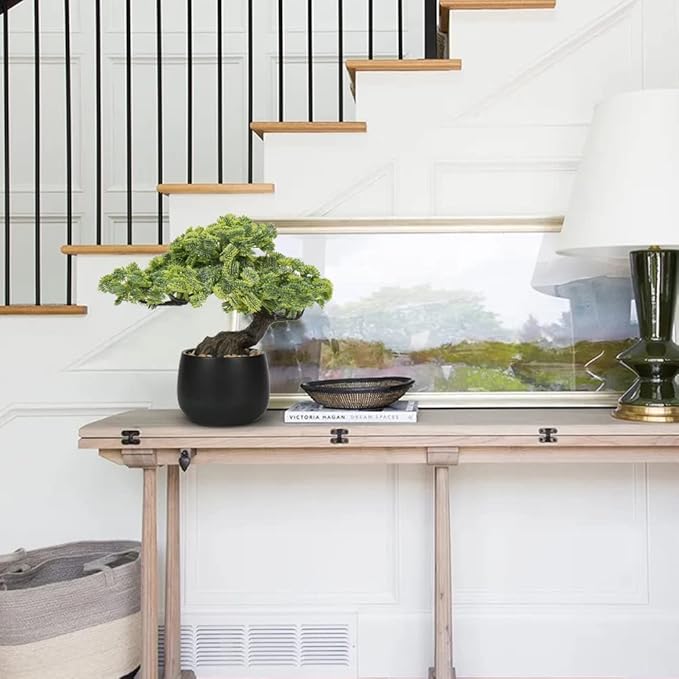 - BONSAI TREE WITH CERAMIC POTS - Artificial potted plants made of high quality PE material, non-toxic, no odor, durable, healthy and environmentally, Vivid color design and high simulation make small fake plant decor very layered and attractive. Mini bonsai tree not only a good home decorations, but also a good gift to your friends. Surprise someone special with one of our most popular artificial pine tree!
