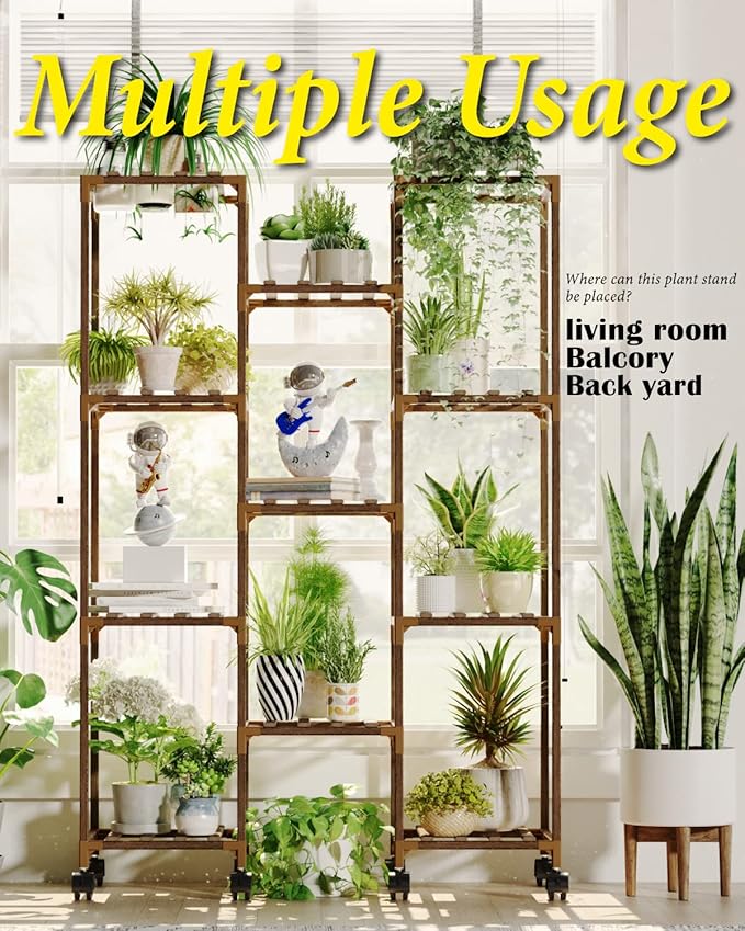 • Plant Stand with Wheels: The Plant Rack is equipped with wheels, allowing you to easily move your plants to the living room, balcony, or garden, adding flexibility and convenience to your space."