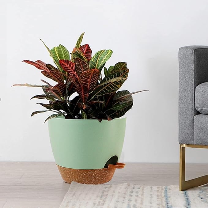 - Self-Watering Combo: Set of 3 plastic planters with mesh drainage holes and deep reservoir for indoor outdoor garden plants and flowers