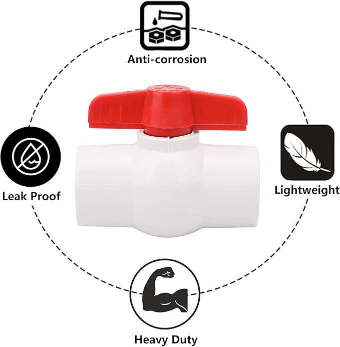 - 【Material】2pcs Heavy Duty 1-1/4 Inch PVC Ball Valve made of high-quality PVC, high-impact strength, resistant to frost and corrosion, long service life.