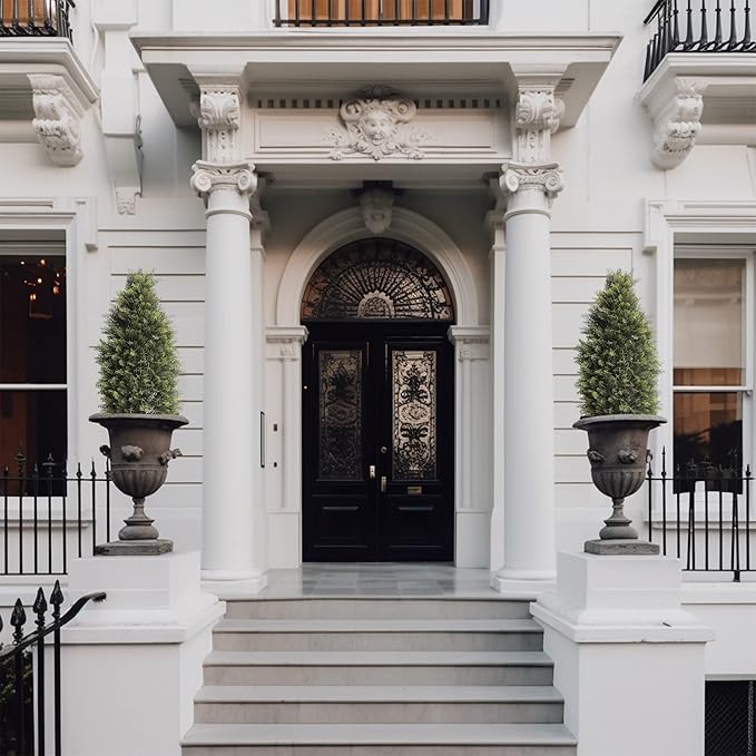 - [Realistic Design]: Our artificial topiary tree is meticulously crafted to mimic the beauty of a real shrub, ensuring a lifelike. Simply set them out and enjoy