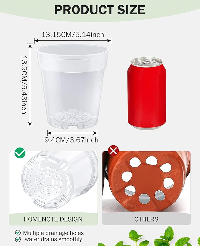 - đ»ăAbundant Drainage HolesăThe bottom of these plastic plant pot comes with unique design drainage holes to keep the soil drained and ventilated, so the transparent planting pots allowing excess water to flow out and preventing root rot. The bottom of the plastic pots for plants are made raised, and the enhanced ventilation can improve the survival rate of the seeds.