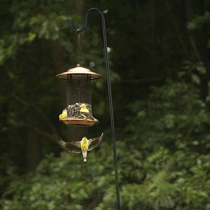 - ★【UNIQUE DESIGN】The 5 base fork design of the shepherd hook provides excellent stability, allowing it to bear heavier weight without falling or bending. The shepherd hook with base is more stable and stronger when inserted into the soil. The outdoor shepherd hook uses a 5/8 diameter rod and a larger hook design, which can better hang items and prevent them from falling.