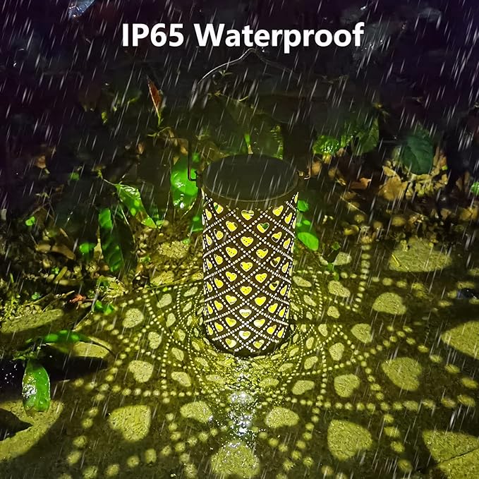 - Durable, Waterproof & Environment-friendly -The outdoor lantern is made of sturdy+thickened metal and durable. IP65 waterproof rating design, don't worry about rain, solar garden lights can work on rainy days. Solar power supply, no electricity charge, no power cord required, easy to use.