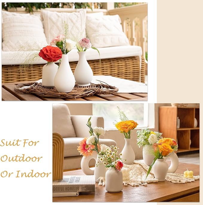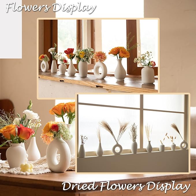 - 【Ceramic Bud Vases Set of 8】This ceramic vase set come with 8 variety of shapes and sizes, enabling you to choose the right one according to your needs.(Please check the detailed size of each style vase in the picture) We have selected some of the most popular shapes (like the hollow design type) and incorporated some of the must-have styles into this set of vases.