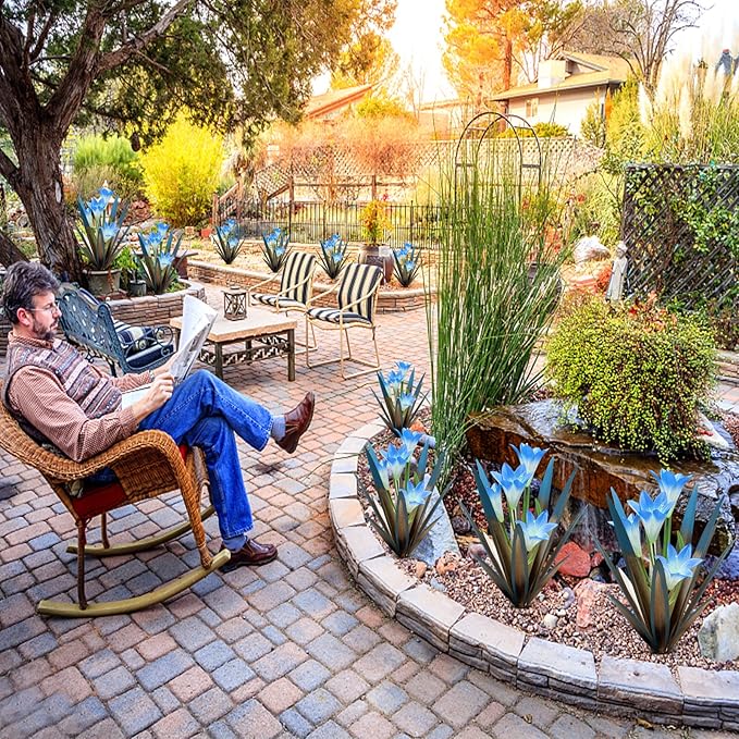 Homight Metal Agave Plant Outdoor Decoration Outdoor Garden Decoration Lily Mexican Yard Art Plant Garden Agave Lily Decorative Garden Gift… (2 Big Blue Lilies)