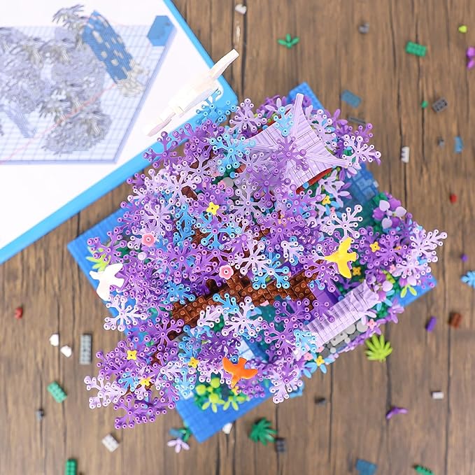 - This flower bonsai treehouse mini bricks building sets measures 11.3 inches high, 8.5 inches wide, and 10.31 inches long.Including towering pavilions, rockeries, flowers, tree and plants,waterfall and other rich details. It's an ideal building toy to collect and display at home, dormitory, apartment and office.